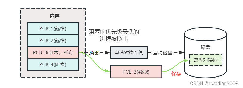 对换进程在实现进程换出时,是将内存中的某些进程调出至对换区,以便腾出内存空间。换出过程可分为以下两步: