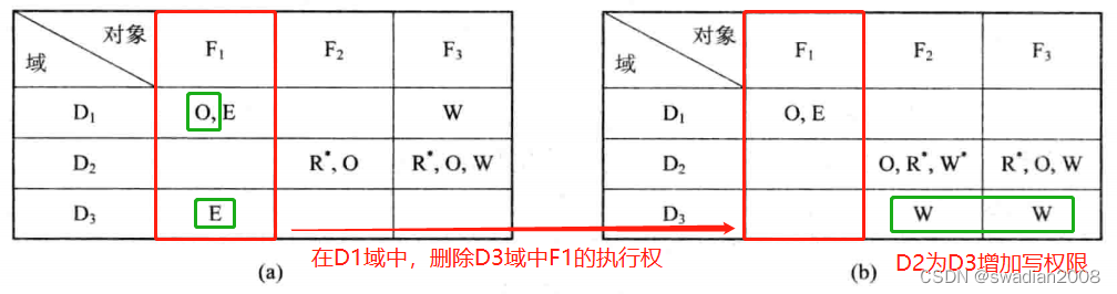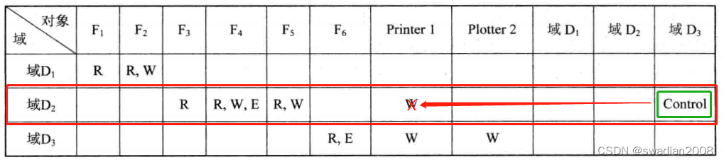 控制权则可用于改变矩阵内同一行中(域中)的各项访问权,亦即,用于改变在某个域中运行的进程对不同对象的访问权的。
