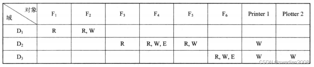 用来描述系统访问控制的矩阵,称为访问矩阵(AccessMatrix)。访问矩阵中的行代表域,列代表对象,矩阵中的每一项是由一组访问权组成的。