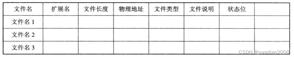 单级文件目录是最简单的文件目录。在整个文件系统中只建立一张目录表,每个文件占一个目录项,目录项中含文件名、文件扩展名、文件长度、文件类型、文件物理地址以及其它文件属性。此外,为表明每个目录项是否空闲,又设置了一个状态位。单级文件目录如下图所示。