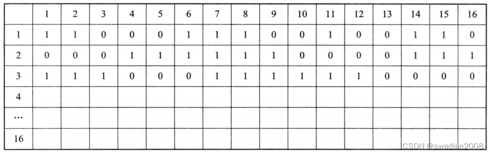 磁盘上的所有盘块都有一个二进制位与之对应,这样,由所有盘块所对应的位构成一个集合,称为位示图。通常可用 m * n 个位数来构成位示图,并使 m * n 等于磁盘的总块数,如下图所示。位示图也可描述为一个二维数组 map [ m,n ]: