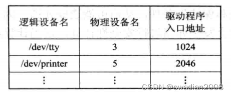 逻辑设备表种包含如下三项:逻辑设备名、物理设备名和设备驱动程序的入口地址。