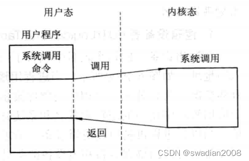 系统为保护设备的安全性,不允许运行在用户态的进程直接调用运行在核心态的 OS 过程,而是在用户层中引入了一个中介过程一一系统调用,应用程序可以通过它间接的调用 OS 中的 I/O 过程,对 I/O 设备进行操作。