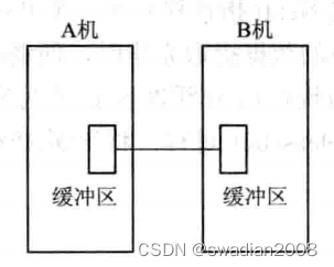 如果两台机器之间的通信仅使用单缓冲区,那么它们之间在任一时刻都只能实现单方向的数据传输。例如,只允许把数据从 A 传送到 B 或者从 B 传送到 A,而绝不允许双方同时向对方发送数据。