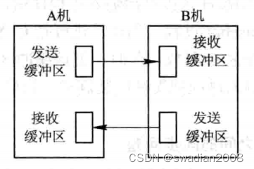 为了实现双向数据传输,必须在两台机器中都设置两个缓冲区,一个用作发送缓冲区,另一个用作接收缓冲区。
