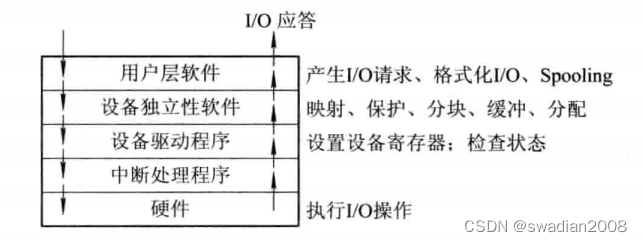 与 I/O 软件组织的层次结构相对应,I/O 系统本身也可分为如下三个层次: